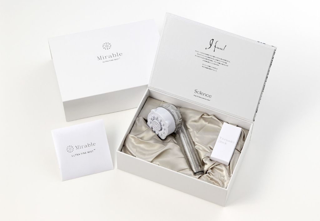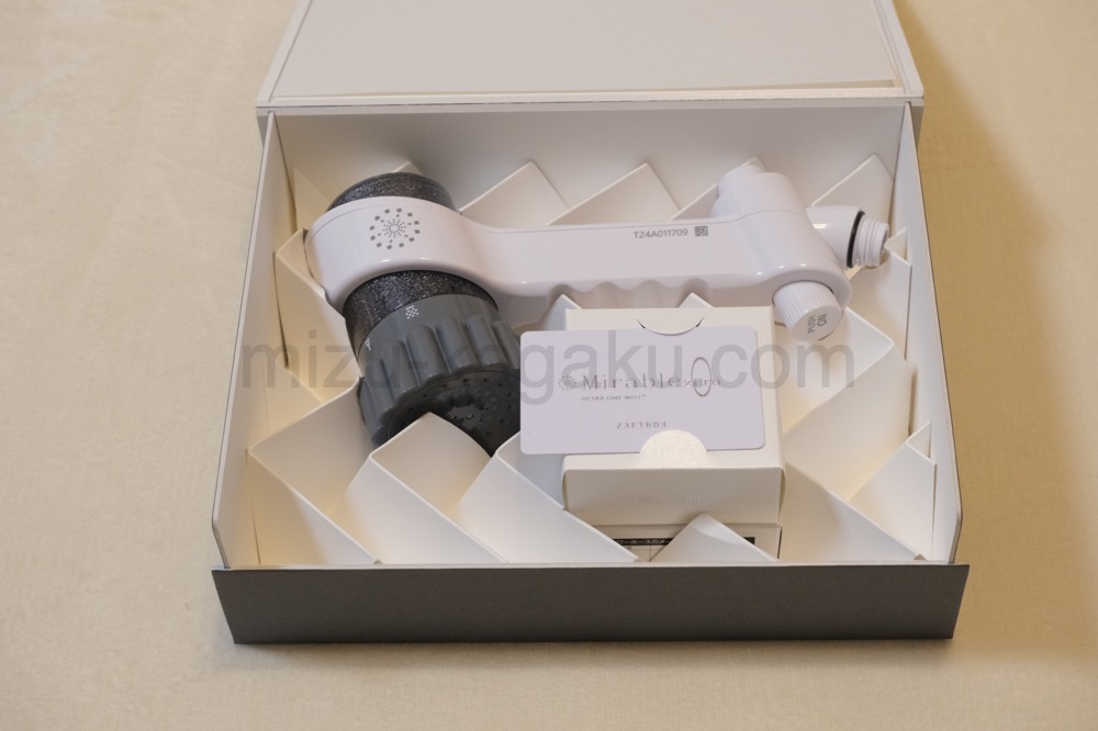 前の項目のミラブルプラスだと、箱を開けると、シルクのような布がにシャワーヘッドが包まれています。一方、正直な話、ミラブルZEROは、シルクのような布はありませんでした。