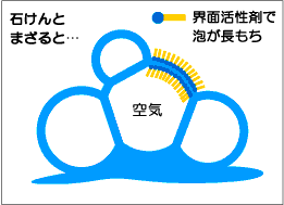 日本石鹸洗剤工業会「石けんや洗剤はなぜ泡がたつの?」によると、